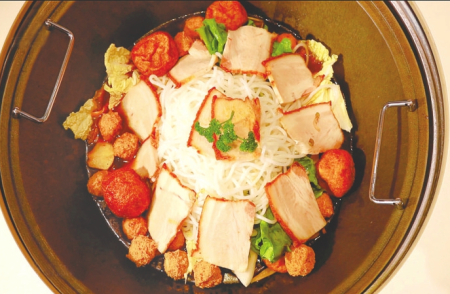 用料講究,特色配菜都要純手工制作。豆腐丸子、肉丸子、燒肉等食材經(jīng)烹飪后,盡顯治愈味道。熬制數(shù)小時的秘制高湯,搭配食客自選食材,經(jīng)鐵鍋燴制,呈現(xiàn)本真風味。