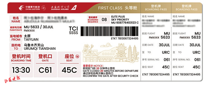| 融合太原文化地標 東航推出山西特色登機牌 |