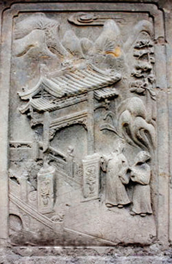 配坊實(shí)際上是一座功名石牌坊,上面刊載著武訪疇一家四代人的姓名及朝廷贈(zèng)封的官爵,咸豐六年(1856)由武訪疇修建。這座石雕牌坊與其它牌坊最大的區(qū)別就是沒(méi)有題刻坊名,因此只能稱之為配坊。坐北向南,為四柱三間三樓單檐歇山頂結(jié)構(gòu),牌樓高8米,寬12米,坊體坐落在近1米高的長(zhǎng)方形臺(tái)基上,立柱仍然采用夾柱石固定。坊頂覆蓋青瓦,正脊飾石雕貔貅裝飾,飛檐翹角,明樓檐下為“圣旨”牌,當(dāng)心間設(shè)兩層小字板,第一層題刻:“贈(zèng)資政大夫曾祖父廷桂,贈(zèng)夫人曾祖母李氏;誥贈(zèng)資政大夫祖父秉壁,誥贈(zèng)夫人祖母吳氏;誥贈(zèng)資政大夫父烈,誥封夫人母朱氏。陜西分巡延榆綏兵備道、加四級(jí)武訪疇謹(jǐn)建?!钡诙宇}刻“大清咸豐六年歲次丙辰仲夏上院榖旦”。武訪疇借建坊要弘揚(yáng)祖輩陰德,而祖輩的姓氏大名又不能題刻在母親的節(jié)孝牌坊上,所以,他必須另建一坊才能完整地表達(dá)心愿。實(shí)際上,這就是建造配坊的真正目的。也正因此在配坊題刻“龍光錫寵”、“鳳詔褒榮”、“克成先志”、“重裕后昆”等。