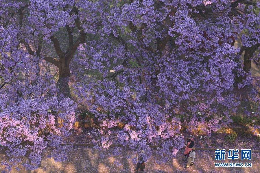 在津巴布韋首都哈拉雷,隨處盛開的藍(lán)花楹成為靚麗的風(fēng)景(10月2日攝)。 近日,位于非洲南部的津巴布韋進入春季,全國各地的藍(lán)花楹紛紛盛開。津巴布韋風(fēng)光秀麗,擁有維多利亞瀑布、大津巴布韋遺址等5處世界自然或文化遺產(chǎn)。首都哈拉雷有多處神奇的平衡石景觀,同時也因出色的園藝被稱為非洲“花城”。新華社發(fā)(陳雅琴攝)