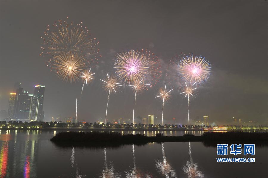 2017年1月1日夜晚,長沙橘子洲附近湘江上空綻放絢麗焰火。當(dāng)晚,湖南長沙橘子洲舉行焰火晚會慶祝新年到來。整場焰火晚會主題為“多彩星城、魅力長沙”,焰火燃放時間約20分鐘。 新華社記者 龍弘濤攝