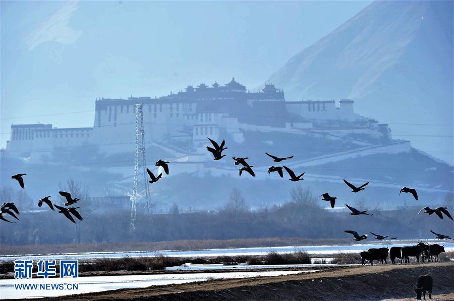 水鳥(niǎo)飛翔在拉魯濕地上空(1月7日攝)。入冬以來(lái),位于拉薩城邊的拉魯濕地國(guó)家級(jí)自然保護(hù)區(qū)候鳥(niǎo)增多,斑頭雁、赤麻鴨、野鴨等數(shù)十種候鳥(niǎo)在這里過(guò)冬。拉魯濕地國(guó)家級(jí)自然保護(hù)區(qū)海拔3600多米,總面積12.64平方公里,是中國(guó)海拔最高、面積最大的城市天然濕地,被譽(yù)為“拉薩之肺”。新華社記者 張汝鋒 攝