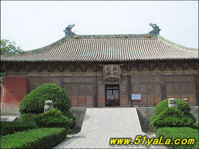 永樂宮內(nèi),宮宇規(guī)模宏偉,布局疏朗,占地總面積8.6萬平方米。中軸線長500米,除山門外,中軸線上還排列著龍虎殿、三清殿、純陽殿、重陽殿等四座高大的元代殿宇。這些元代建筑,是我國古建筑中的優(yōu)秀遺產(chǎn)。三清殿、純陽殿、重陽殿之間以高聳的臺基甬道相通連,布局與皇宮設置相近。在建筑總體布局上風格獨特,東西兩面不設配殿等附屬建筑物,在建筑結(jié)構(gòu)上,吸收了宋代“營造法式”和遼、金時期的“減柱法”,形成了自己特有的風格。.龍虎殿原為宮門,稱無極門,面寬5間,深6椽,中柱3間。安門,沿襲宋金“草袱”的規(guī)制,殿內(nèi)壁畫繪有神荼、郁壘、城隍、土地諸神象。