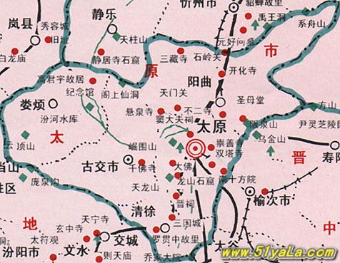 太原位于山西省中部,為山西省省會,簡稱并,別稱并州,古稱晉陽,瀕臨汾河,三面環(huán)山,海拔約800米,地理座標為東經(jīng)111°30′~113°09′,北緯37°27′~38°25′。區(qū)域輪廓呈蝙蝠形,東西橫距約144公里,南北縱約107公里,總面積6956平方公里,總人口近300萬。其中市區(qū)面積140余平方公里,分南城、北城和河西三個區(qū),市區(qū)人口100多萬。郊區(qū)分南郊、北郊和古交區(qū)?,F(xiàn)轄一市、兩郊、三城、三縣,市轄縣包括陽曲、清徐和婁煩。太原市的街道十分規(guī)范,南北走向的統(tǒng)稱路,東西走向的統(tǒng)稱街。晉祠、天龍山、崛潿山等景觀雄奇壯麗,各具異色,因此,自古就有“錦繡太原城”的美譽。