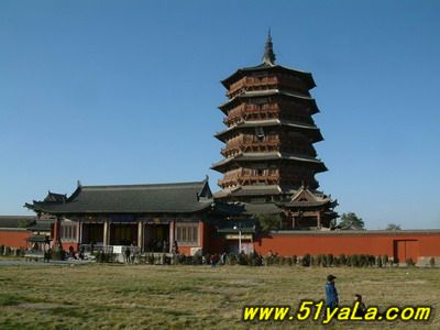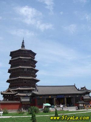 應縣木塔佛宮寺釋迦塔位于山西省應縣城內西北佛宮寺內。俗稱應縣木塔。塔總高67.31米,是我國現存時代最早的木結構高層建筑.佛宮寺釋迦塔建于后晉天福年間,遼清寧二年(1056年)重修。