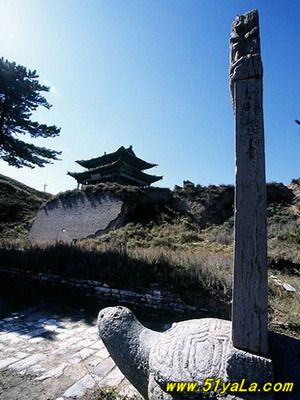 雄關(guān)雁門,居“天下九塞”之首(《呂氏春秋》)。從戰(zhàn)國時期的趙武靈王起,歷代都把此地看作戰(zhàn)略要地。趙置雁門郡,此后多以雁門為郡、道、縣建制戍守。雁門關(guān)之稱,始自唐初。因北方突厥崛起,屢有內(nèi)犯,唐駐軍于雁門山,于制高點(diǎn)鐵裹門設(shè)關(guān)城,戍卒防守?!短茣?middot;地理志》描述這里“東西山巖峭拔,中有路,盤旋崎嶇,絕頂置關(guān),謂立西徑關(guān),亦曰雁門關(guān)。”后經(jīng)五代十國、宋、遼、金、元約四百余載。元朝設(shè)千戶所,關(guān)城被毀。明代吉安侯陸享于洪武七年(1374)自監(jiān)民工筑新關(guān)于舊關(guān)東北十里處的要道。南距代城縣四十余里,北鄰廣武古城二十一里,地勢更為險要。明末清初的著名學(xué)者顧炎武曾親臨此地。他寫道“雁門重關(guān),山巒在演,霞飛云舉,兩山對峙,其形如門,而飛雁出于其間?!痹撽P(guān)城,周長二里,墻高二丈,石座磚身,雉堞為齒,洞口三重,曰東門、西門、小北門。東門上筑樓臺,曰雁樓,門額嵌石匾一方,橫書“天險”(即“天險”)。西門上筑有楊六郎廟,門額嵌石匾一方,橫書“地利”(即“地利”)。小北門未設(shè)頂樓,但磚石結(jié)構(gòu),格外雄固。門額石匾橫刻:“雁門關(guān)”三字。洞門兩側(cè)鑲嵌磚鐫楷書檢聯(lián):“三關(guān)沖要無雙地,丸塞尊崇第一關(guān)?!睎|門外北側(cè)建有“靖邊寺”祀戰(zhàn)國時代的軍事家趙將李牧。西門外右側(cè)建有關(guān)帝廟。關(guān)城正北置有駐軍營房,東南設(shè)有練兵教場。整個關(guān)城建筑,虎踞龍盤,雄偉壯觀。明清以后,關(guān)城雖屢有重建。但隨著我多民族統(tǒng)一國家疆域的逐步形成,內(nèi)長城作為“內(nèi)邊”的作用已經(jīng)失去,所屬的雁門雄關(guān)也隨之荒廢?,F(xiàn)在的關(guān)城僅在東門、西門、小北門三個門洞和靖邊寺前的一對石獅,一副石旗桿,明鐫李牧碑石一塊,以及寺后的數(shù)株青松。