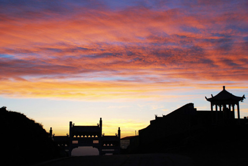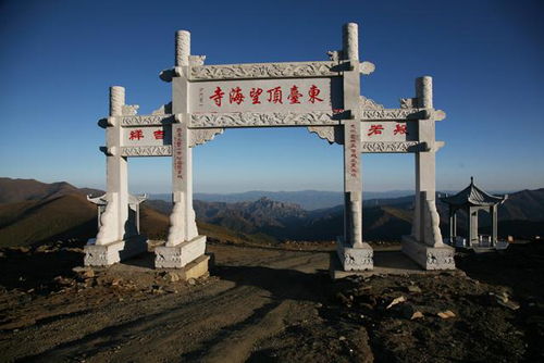 望海峰的盛景在于東觀日出。由于東面再無大山阻擋,所以人的目力可東眺非常遙遠的地方。峰頂曾建有望海樓,專門為觀景而建。可惜年久已毀,1985年重建,為望海寺,內(nèi)供聰明文殊。有史籍記載日出之壯麗景象:“每當蒸云寢壑之隙,爽氣澄秋之際,于日出扶桑之時,可望紅日十倍于車輪,紅輪之下,隱隱水光閃爍,若波若鏡,瑰麗非凡。1977年8月,趙樸初先生登東臺觀日出后乘興填詞《五臺雜詠·調(diào)寄憶江南》,形象描繪了東臺日出之勝景: