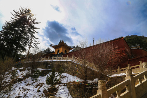 鎮(zhèn)海寺位于山西省忻州市五臺(tái)縣臺(tái)懷鎮(zhèn)南清水河西側(cè),距臺(tái)懷鎮(zhèn)5公里。坐落在“二龍戲珠”的風(fēng)水寶地,左右兩側(cè)環(huán)繞的山峰,猶如兩條飛龍落下河谷,拱背彎腰,騰挪圍抱;寺院建筑在兩山合抱的一個(gè)石山嘴上,宛若一顆二龍嬉戲的寶珠。山豁口有蒼老挺拔的大松樹(shù),走在松樹(shù)林間的蹊徑,再聽(tīng)颯颯的松風(fēng),給人一促靜寞幽深的感覺(jué)。入寺四望,南側(cè)的山峰,長(zhǎng)滿密密麻麻的杉樹(shù)和楊樹(shù),北側(cè)的山巔上,千年古松出于(山免)巖石之中。這里是五臺(tái)山的一處風(fēng)景區(qū),濃蔭蒼翠的古松掩映山寺,在五臺(tái)寺廟區(qū)還是少見(jiàn)的。