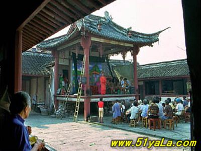 牛王廟戲臺在山西臨汾市西北25公里魏村牛王廟內(nèi)。戲臺建于元至元二十年(1283年),大德七年(1303年)毀于地震,至治元年(1321年)重建,明、清曾予修補。廟內(nèi)現(xiàn)存廊廡、獻亭、正殿、垛殿等。正殿供三王(牛、王、馬王、藥王),塑像俱存。戲臺為木構亭式舞臺,平面方形,單檐歇山頂,四角立柱各一根,前面及兩側(cè)前部敞朗,作為臺口,音響效果較好,背面及兩側(cè)后部筑以墻壁,還保留著宋金樂亭古制。臺上無后場之分,前檐用八棱石柱兩根,正面雕牡丹及化生童子,柱側(cè)刻創(chuàng)建與重修年代。臺上梁架迭構,額枋、蘭普、斗拱上下三層,形如龐大疏朗的藻井,簡練精巧。戲臺古稱舞亭或舞樓,宋、金時晉南一帶已有,元代相當普遍,但保存至今者較少。戲臺為研究元雜劇在山西一帶發(fā)展歷史和金元時期戲臺建造規(guī)制的重要資料。廟內(nèi)獻亭,造型別致,結(jié)構精巧,也是一處較為珍貴的古代建筑。