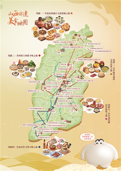 這5條非遺美食線路以“晉商文化”“面食王國”“藥膳康養(yǎng)”等為主題,以3日游或4日游為主,包括晉北民族融合文化探源之旅、晉西黃土風(fēng)情尋味之旅、晉中醋香面韻美食雙絕之旅、晉南麥作文明尋根之旅、晉東南藥膳山珍秘境之旅,覆蓋醋釀、面藝等30余項(xiàng)省級(jí)以上非遺美食項(xiàng)目,串聯(lián)起太原、大同、長治等全省11市30多個(gè)非遺工坊以及眾多歷史街區(qū)、自然景觀,形成“美食+非遺+景區(qū)”的立體化文旅線路。