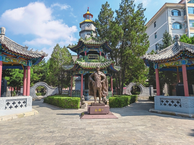 穿過大門,一座約3米高的古銅色左權(quán)將軍塑像巍然屹立。將軍身披軍大衣,目光堅定地望向遠(yuǎn)方,仿佛仍在守護(hù)這片曾經(jīng)戰(zhàn)斗過的土地。塑像后方,蒼松翠柏掩映著亭臺廊廡,肅穆之感油然而生。