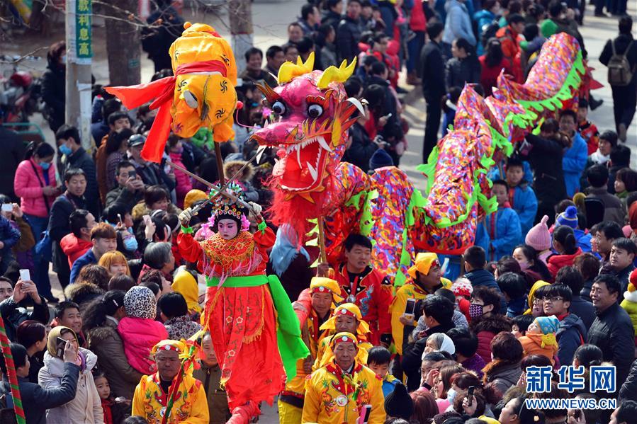 2月21日,社火隊在進行巡游拜年。當(dāng)日,有著千年歷史的傳統(tǒng)村落——山東省章丘市三德范村組織31個社火隊舉行社火巡游拜年活動,在元宵佳節(jié)來臨之際為鄉(xiāng)親們送祝福。新華社記者 郭緒雷攝
