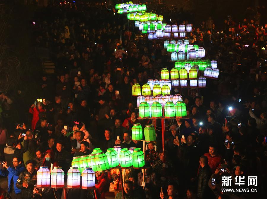 15日,湖南衡陽縣界牌鎮(zhèn)舉行火燈節(jié)民俗活動,居民們點亮火把、紅燭,彩燈等,走街串巷,祈求一年風調雨順、農(nóng)業(yè)生產(chǎn)豐收、社會平安和諧。新華社發(fā)(曹正平 攝)