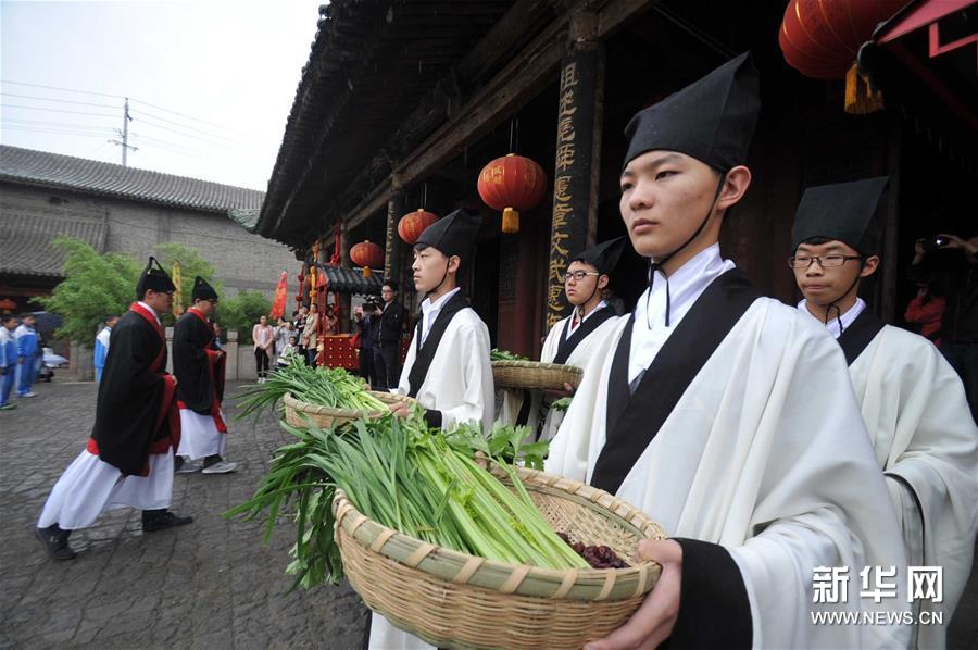 5月7日,山西運城新絳縣在當(dāng)?shù)厍旯懦墙{州的文廟首次舉行釋菜禮大典,以弘揚傳承尊師古文明,吸引了城鄉(xiāng)眾多群眾和中小學(xué)生冒雨觀典。新華社發(fā)(高新生 攝)