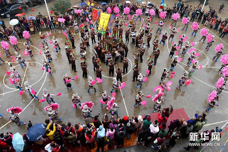2月7日,廣西融水苗族自治縣安太鄉(xiāng)苗族群眾開展傳統(tǒng)的“打同年”民俗活動(dòng)。當(dāng)?shù)財(cái)?shù)百名苗族同胞與游客們歡聚一堂,一起開展對(duì)歌、蘆笙踩堂、文藝晚會(huì)等活動(dòng),歡慶新春佳節(jié)。 “打同年”是融水苗族村寨的一種民俗,即友好村寨之間的拜年聯(lián)歡活動(dòng)。新華社記者 李斌 攝