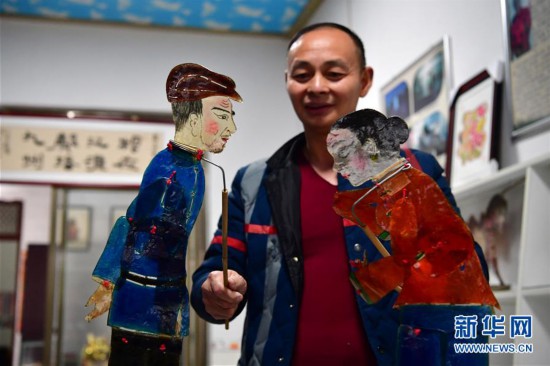 11月27日,在河南省信陽市羅山縣彭新鎮(zhèn)曾店村,羅山皮影戲傳承人陳雨倫在羅山皮影社會傳承交流基地給游客表演皮影戲。據(jù)《羅山縣志》記載,羅山皮影源自河北灤州,從明嘉靖年間開始在河南省信陽市羅山縣傳承,距今已有四百余年歷史。羅山皮影的皮影人是用牛皮制作,工序復(fù)雜,制作精美,生、旦、凈、丑行當(dāng)齊全。2008年,羅山皮影戲入選第一批國家級非物質(zhì)文化遺產(chǎn)擴展項目名錄。 新華社記者馮大鵬攝