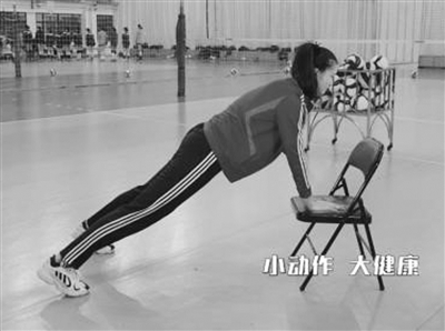 ●俯臥支撐姿勢(shì)。雙手扶辦公椅(或俯臥支撐在地面);