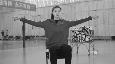 ●雙手各持一重物(礦泉水瓶),坐在板凳或椅子上,雙腳平放地面,支撐身體保持平衡;