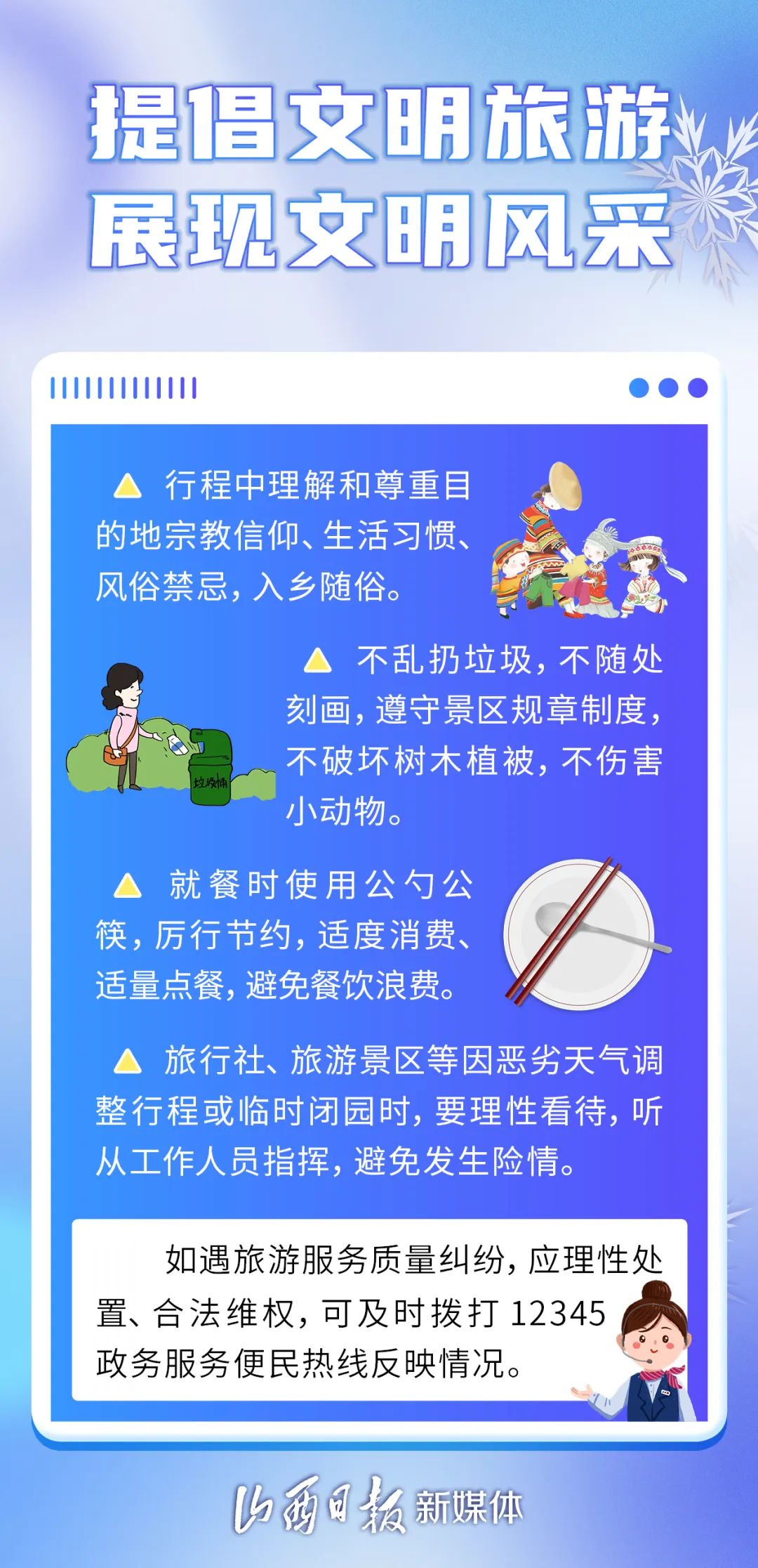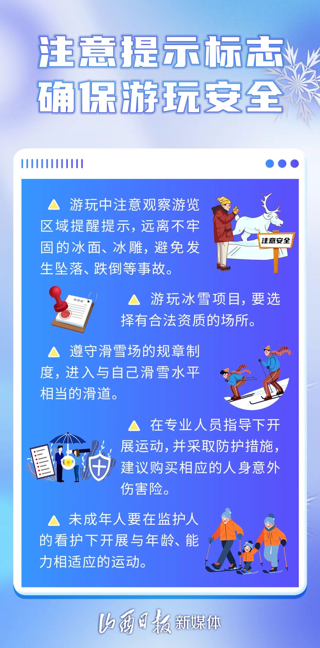 雪花裝點了世界,同時,也為出行帶來了安全隱患。下面是雪天安全出游的小常識,請仔細(xì)閱讀。