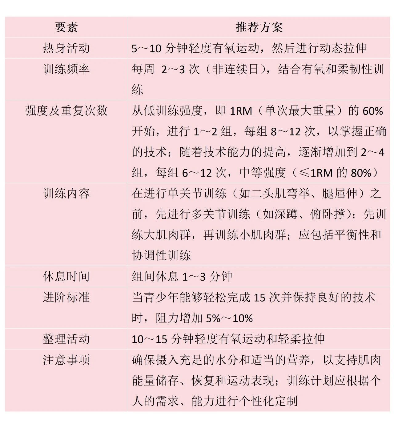青少年的肌肉力量訓(xùn)練應(yīng)遵循以下原則。