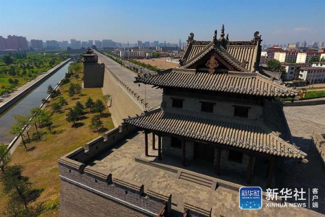 ↑2017年5月18日拍攝的大同古城城墻(無人機拍攝)。新華社記者 曹陽 攝