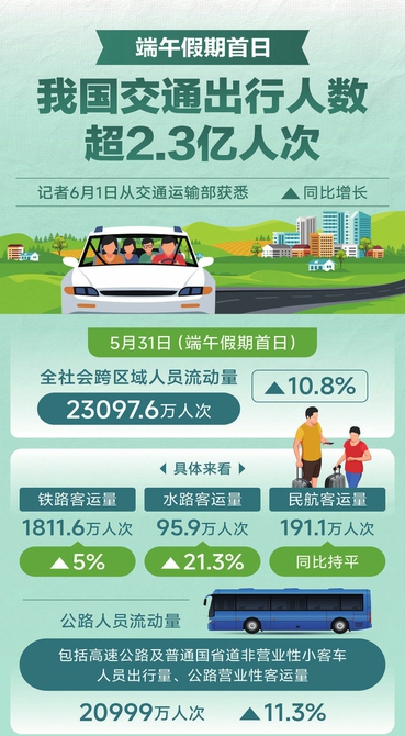 端午假期首日 我國交通出行人數(shù)超2.3億人次