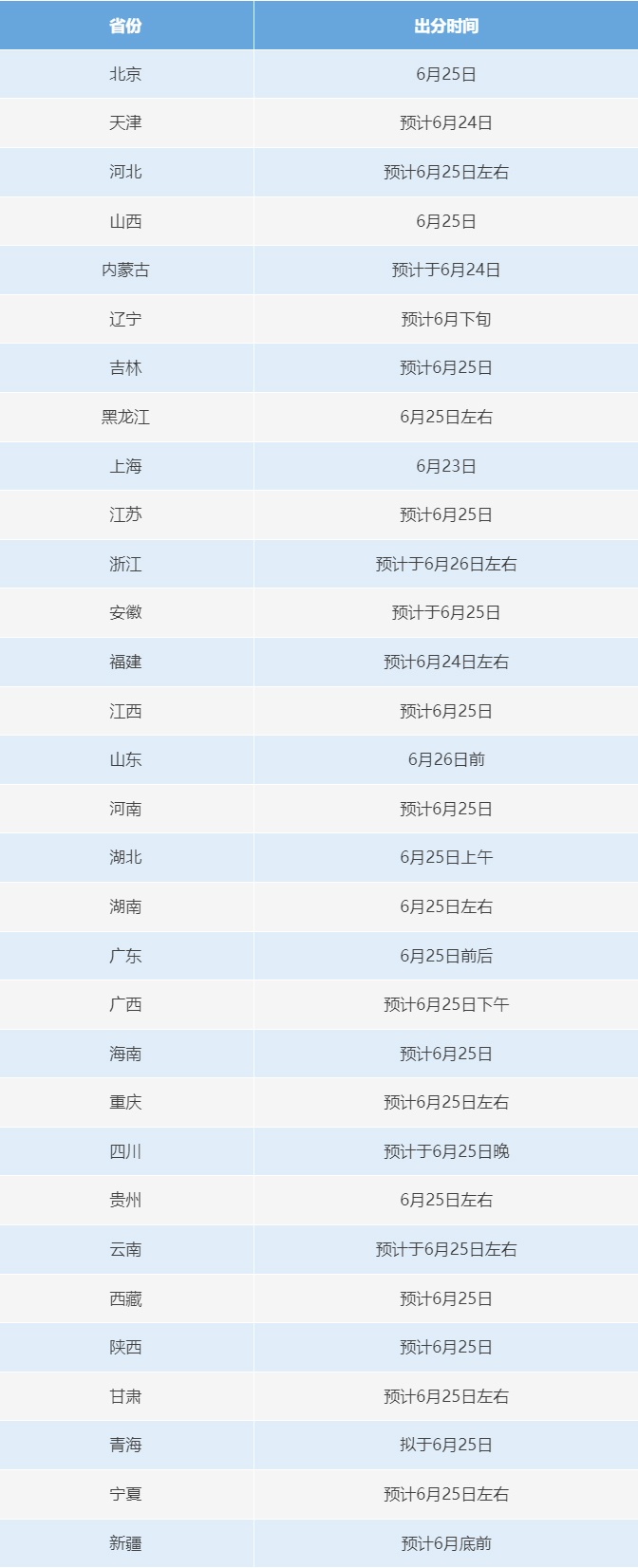 31個(gè)省份高考成績(jī)查詢(xún)時(shí)間