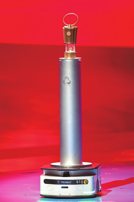 十五運會和殘?zhí)貖W會火種燈名為“星火筑夢”。中部為耐高溫高透玻璃與象征粵港澳三地的三根支柱,共同構(gòu)成火種展示區(qū)。十五運會和殘?zhí)貖W會火種盆名為“鼎盛同心”,又名“同心鼎”,設(shè)計靈感源自古代瓷器“花觚”。
