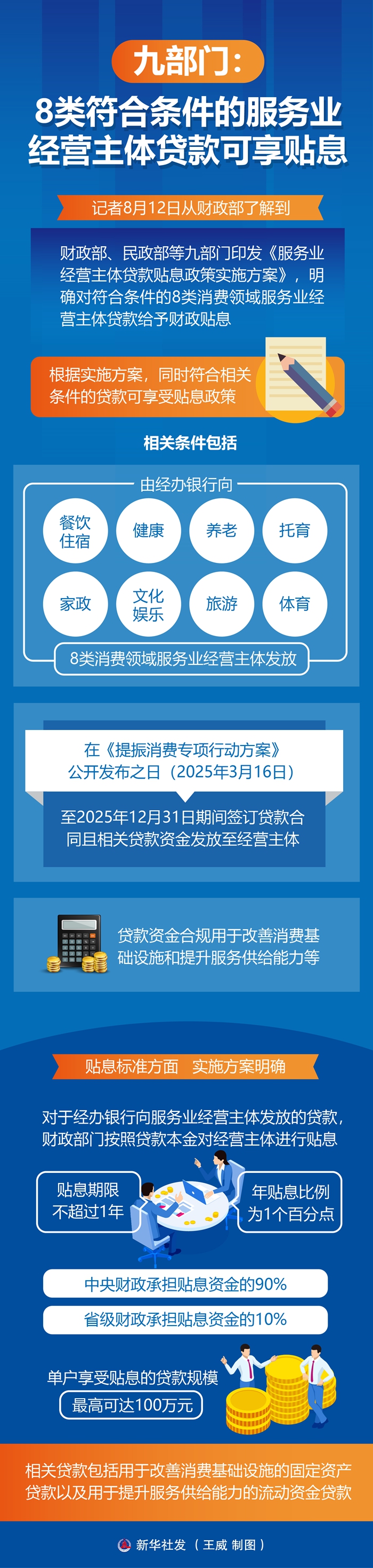 新華社北京8月12日電(記者申鋮)記者12日從財政部了解到,財政部、民政部等九部門印發(fā)《服務業(yè)經營主體貸款貼息政策實施方案》,明確對符合條件的8類消費領域服務業(yè)經營主體貸款給予財政貼息。