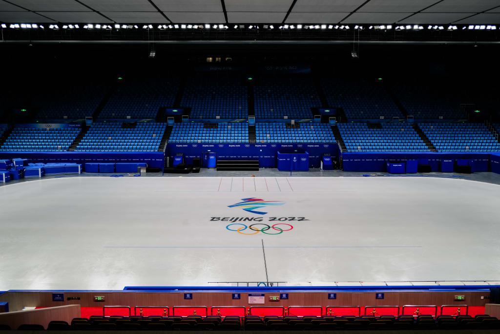 這是1月12日拍攝的首都體育館內(nèi)景。(新華社發(fā) 王洋 攝)