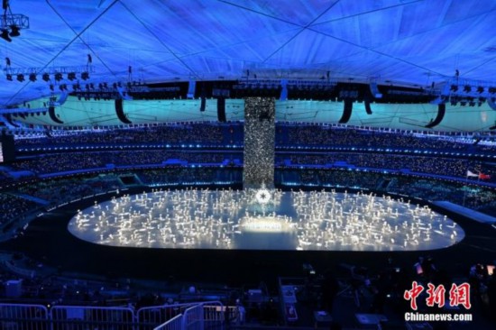 北京冬奧會開幕式上的“雪花”環(huán)節(jié)。 中新社記者 毛建軍 攝