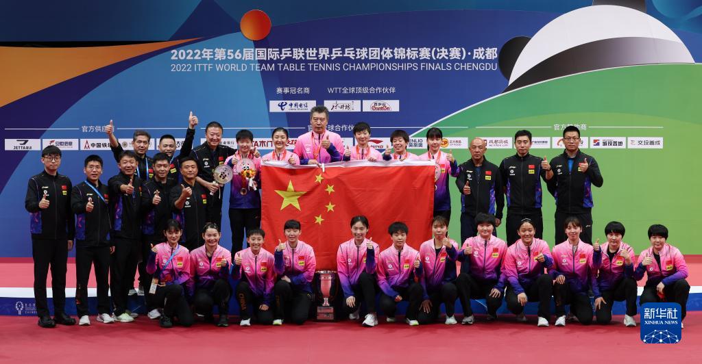 新華社成都10月8日電(記者陳地)8日晚,備受關注的2022年第56屆世界乒乓球團體錦標賽女團決賽上演,中國隊三名隊員陳夢、王曼昱、孫穎莎發(fā)揮出色,3:0完勝日本隊,幫助中國隊以八戰(zhàn)全勝的驕人戰(zhàn)績奪冠,并實現(xiàn)世乒賽五連冠。