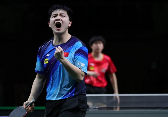 5月28日,樊振東在比賽中慶祝得分。新華社記者 王東震 攝