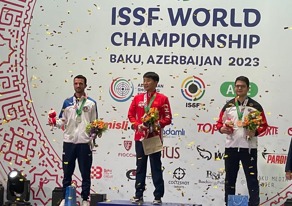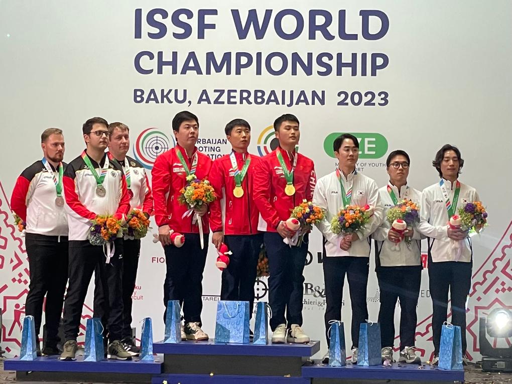 該項(xiàng)目比賽中,中國隊(duì)老將新人都有出色發(fā)揮。首次參加國際比賽的王鑫杰資格賽打出588環(huán)排名第一,與位居次席的李越宏攜手晉級決賽。他們兩人與劉楊攀組成的中國隊(duì)團(tuán)體成績1756環(huán),追平了世界紀(jì)錄,足足領(lǐng)先亞軍德國隊(duì)16環(huán)。