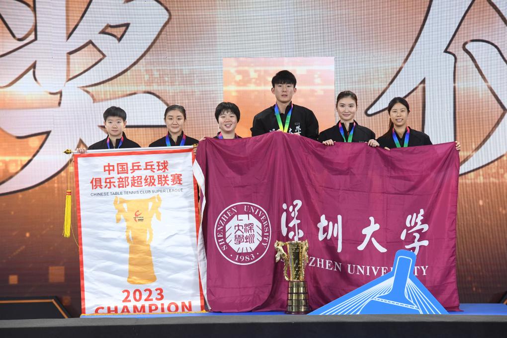 女團(tuán)的冠軍爭奪更為膠著,擁有陳夢、孫穎莎兩位奧運(yùn)冠軍的深圳大學(xué)隊(duì)3:2艱難戰(zhàn)勝王曼昱所在的山東魯能女隊(duì)奪冠。首盤雙打比賽,蒯曼/陳夢3:2戰(zhàn)勝范思琦/錢天一,為深圳大學(xué)隊(duì)拔得頭籌。第二盤王曼昱與孫穎莎上演“強(qiáng)強(qiáng)對話”,王曼昱3:2險勝,為山東魯能隊(duì)扳回一城。隨后陳夢3:0戰(zhàn)勝錢天一,蒯曼0:3不敵王曼昱,雙方盤分戰(zhàn)至2:2平。決勝盤中,孫穎莎3:0戰(zhàn)勝范思琦,深圳大學(xué)隊(duì)時隔三年女團(tuán)再度登頂。