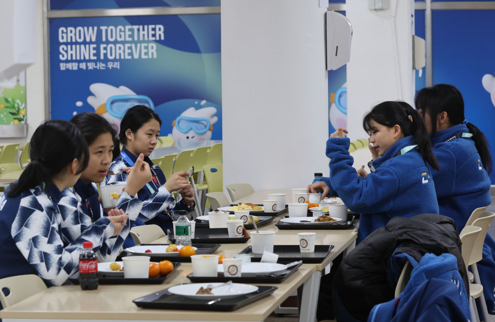 1月18日,中國運(yùn)動員在冬青奧村內(nèi)就餐。新華社記者 姚琪琳 攝