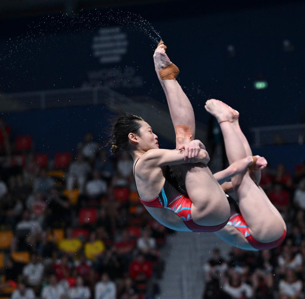 女雙3米板決賽中,衛(wèi)冕冠軍昌雅妮/陳藝文以323.43分蟬聯(lián)金牌,實現(xiàn)世錦賽該項目“三連冠”。澳大利亞組合基尼/史密斯和英國組合哈珀/米尤-詹森分獲亞軍和季軍。這是昌雅妮在世錦賽該項目上奪得的第四枚金牌。2017年世錦賽上,她與施廷懋搭檔首奪女雙3米板冠軍。