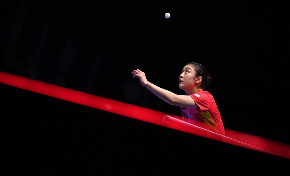 2月22日,陳夢(mèng)在第二盤比賽中發(fā)球。新華社記者 陶希夷 攝