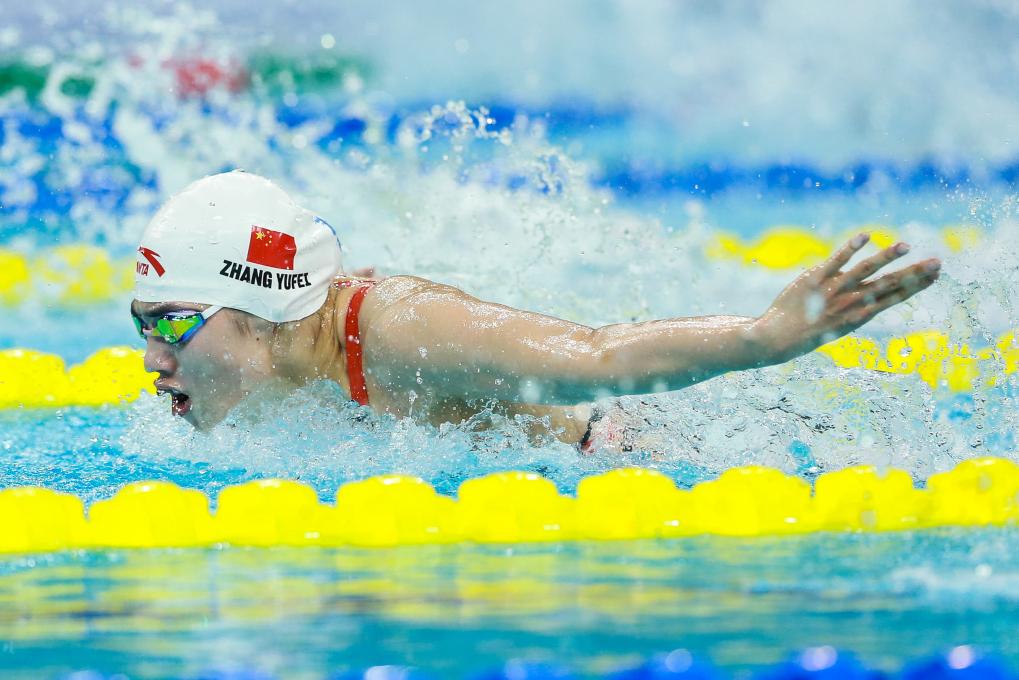 在女子200米蝶泳決賽的爭奪中,張雨霏一路領(lǐng)先以2分06秒40奪冠,陳露穎、龔真琦分獲銀牌和銅牌。