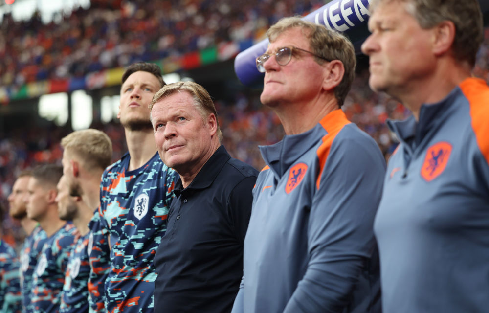 6月21日,荷蘭隊主教練羅納德·科曼(中)在比賽前。當日,在德國萊比錫進行的2024歐洲足球錦標賽D組第二輪比賽中,法國隊0比0戰(zhàn)平荷蘭隊。新華社記者 白雪飛 攝