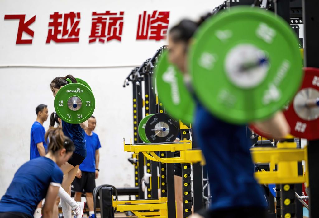 7月13日,中國女排隊員在進行力量訓(xùn)練。新華社記者 魏培全 攝