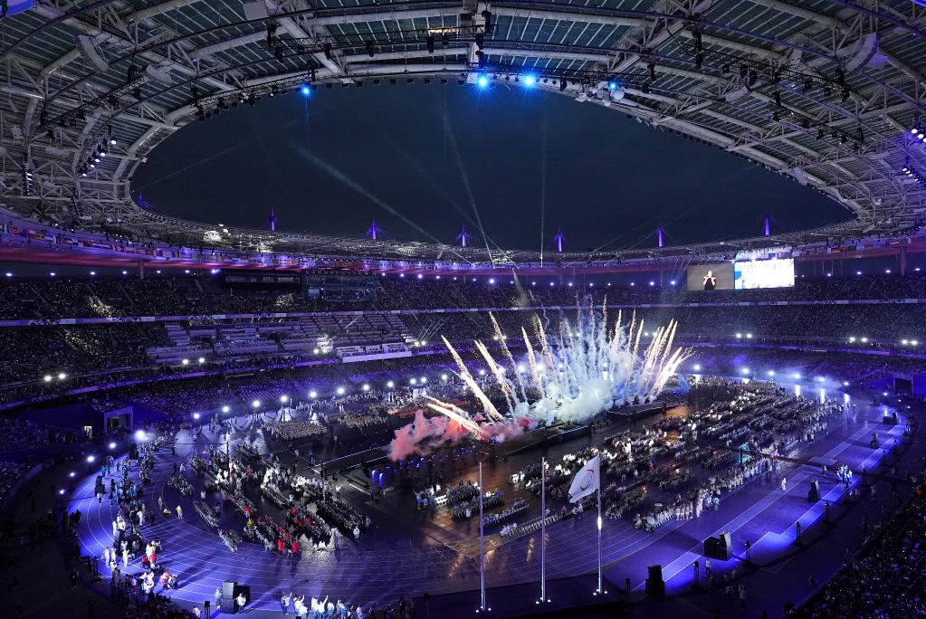 運動員們離開座位,“暢游”在整片場地,吉祥物“弗里熱”隨處互動。持續(xù)12天的盛會在派對中結(jié)束。
