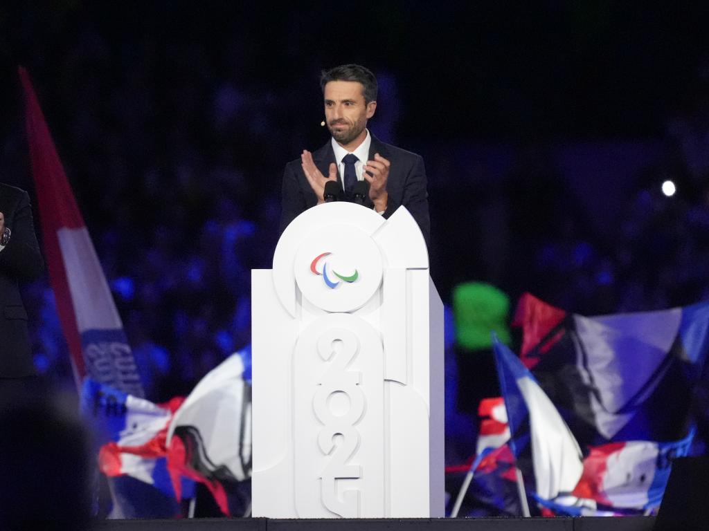 9月8日,巴黎奧組委主席托尼·埃斯坦蓋在閉幕式上致辭。新華社記者 才揚 攝