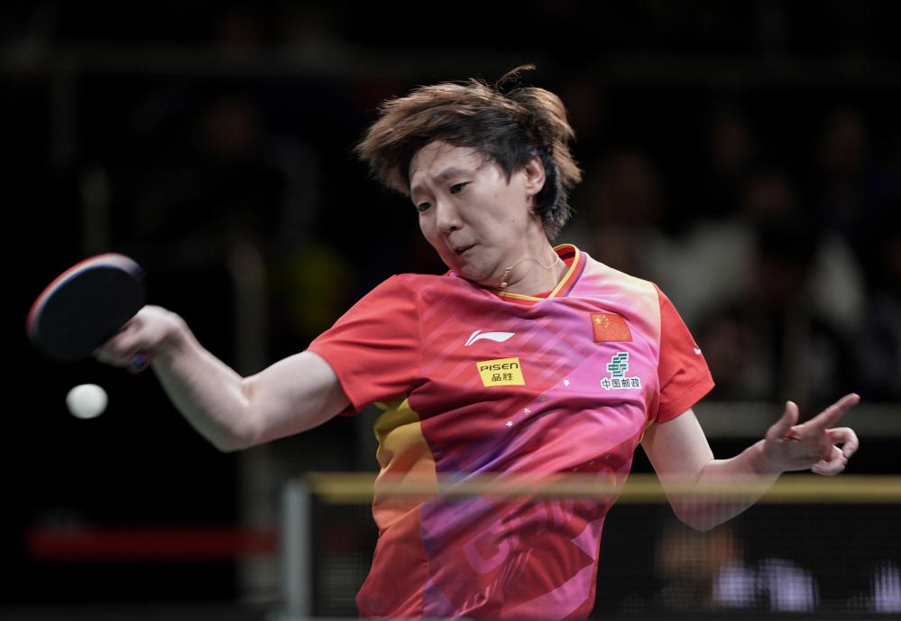 12月8日,中國隊(duì)選手王曼昱在女單比賽中回球。新華社記者 江宏景 攝