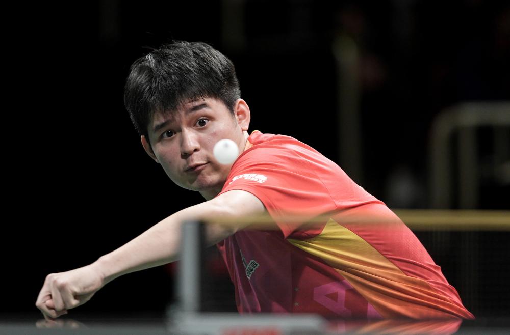 12月8日,中國隊(duì)選手林詩棟在男單比賽中。新華社記者 江宏景 攝