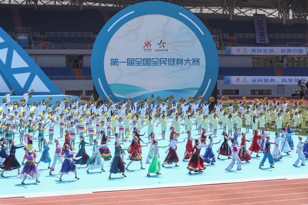 5月20日,演員在第一屆全國全民健身大賽開幕式現(xiàn)場進(jìn)行表演。新華社記者 潘昱龍 攝