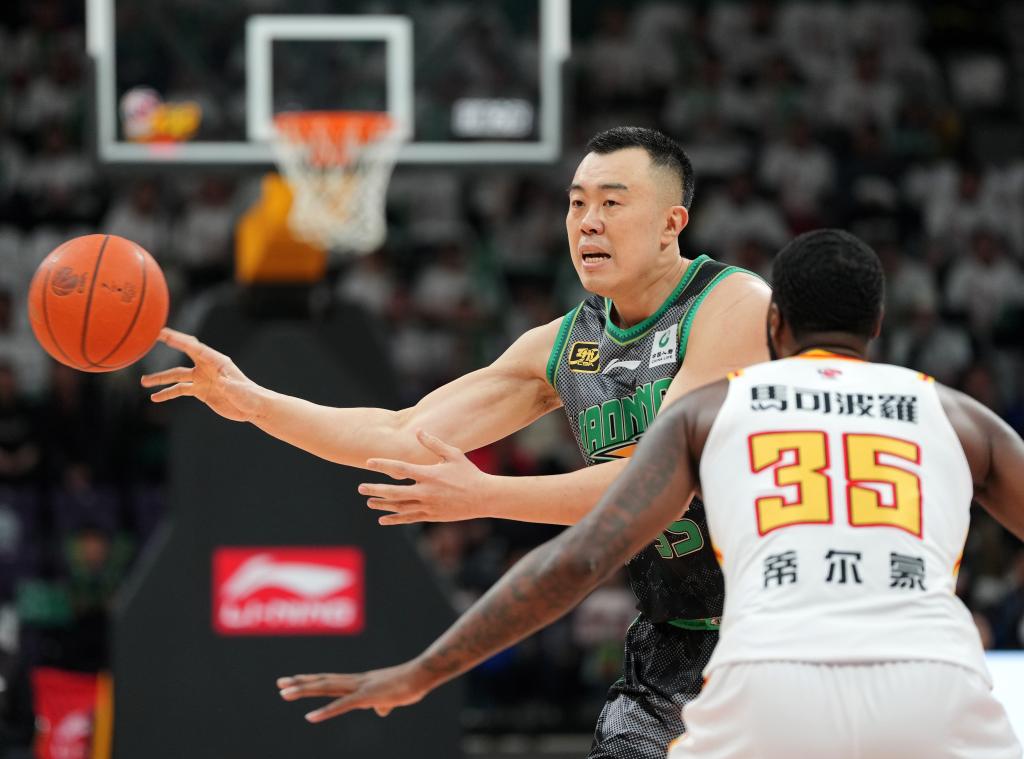 3月19日,遼寧隊(duì)球員韓德君(左)在比賽中傳球。新華社記者 李鋼 攝