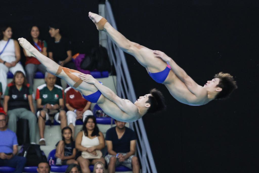 4月6日,掌敏潔(左)/盧為在比賽中。新華社發(fā)(迪亞娜·馬克斯攝) 在女子三米板決賽中,中國隊兩位選手始終占據(jù)前兩位,陳佳憑借最后一跳更穩(wěn)定的發(fā)揮以380.55分摘金,陳藝文以7.65分之差位列第二。澳大利亞選手基尼拿下銅牌。 “今天成套分數(shù)已經(jīng)超乎預(yù)料,因為這半年恢復(fù)期起伏蠻大的?!标愃囄恼f,“前面三跳近期來說算是超常發(fā)揮,后面兩跳算是正常。” 壓軸進行的男子十米臺決賽再度掀起現(xiàn)場高潮,墨西哥選手巴爾德斯憑借高質(zhì)量的穩(wěn)定發(fā)揮,以547.70分為東道主再添一金。中國選手朱子鋒和程子龍分列二、三名。
