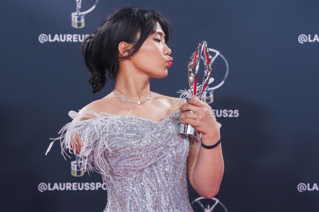 曾于2023年榮膺勞倫斯最佳極限運(yùn)動(dòng)員獎(jiǎng)的谷愛凌當(dāng)晚作為勞倫斯獎(jiǎng)大使和頒獎(jiǎng)嘉賓出席頒獎(jiǎng)禮。