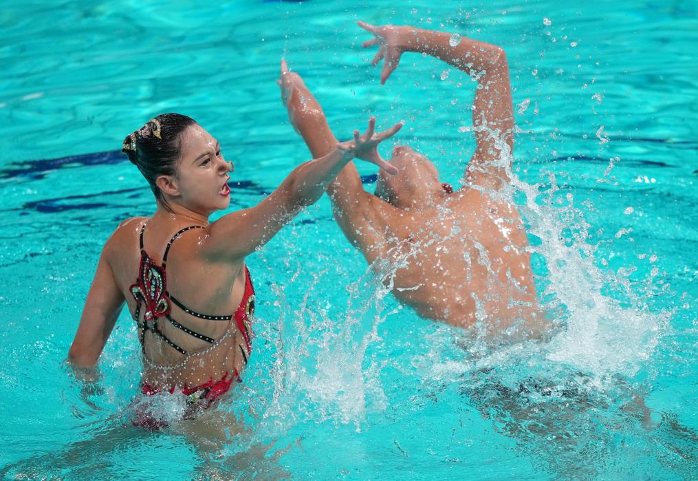 混合雙人自由自選比賽中,西班牙組合岡薩雷斯/卡薩斯以290.2184分奪得金牌。中國(guó)組合郭牧也/劉津含呈現(xiàn)了以《莫比烏斯》為主題的節(jié)目,收獲一枚銀牌。英國(guó)組合索普/湯布林位列第三名。